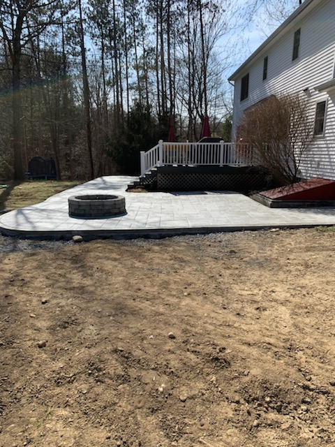 Patio Season is here! Today we completed this beautiful job in East Greenbush. This is a Stamped Patio with an Ashlar Slate design and a block firepit. Everyone is ready for summer!